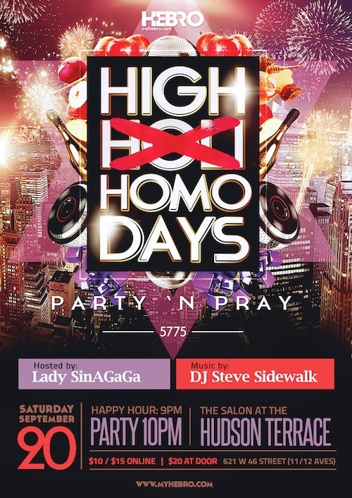 Listen up Gay Jews in NYC! Join this Butter Boy on Saturday and celebrate the new-jew-year and blow your shofar with your favorite Hebrew-hotties (and the goys that love us) at Hebro's annual high-holiday blowout on Saturday, Sep 20 at Hudson Terrace! $15 online tix HERE, $20 at door.